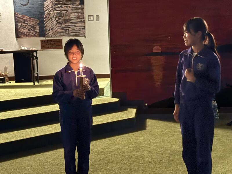 2024年10月9日 19時26分楽しい夕食が終了し、キャンドルファイヤーの時間になりました。火の神からありがたい火を受け取った子ども達。この宿泊学習でどんな成長を見せてくれるかな?夕食の様子は、明日お伝えします。