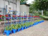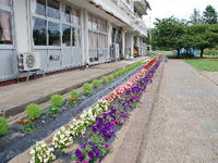 真夏が近づき、校舎前の花壇も、1年生の朝顔も元気に成長しています。