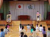 校長先生のお話のあと、児童による寸劇とクイズが行われ、