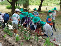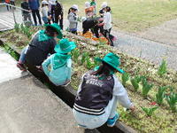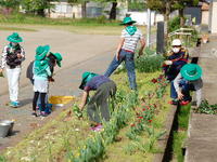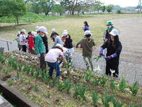 朝の時間を利用して、全校児童でチューリップの球根を抜きました。