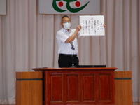 校長先生から「奉仕の心、善意の心、相手を思いやる心を大切にしよう」