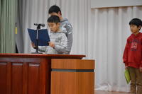 2019年12月23日 11時01分 81日間の第2学期も本日の終業式で終了となりました。この2学期間、様々な場面で子どもたちの活躍をご覧いただけたと思います。これも、子どもたちのがんばりは勿論ですが、保護者の皆様はじめ地域の皆様のご支援・ご協力があったこそです。深く御礼申し上げます。