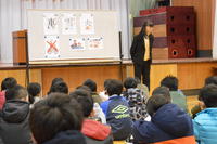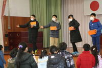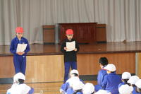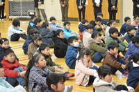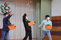 2020年2月4日 08時16分2月3日(月)、恒例の豆まき集会を行いました。年男年女である5年生5名と6年生2名が大きな声で元気に豆をまいて鬼を追い払いました。また、当たり豆を拾った人には、後日プレゼントが贈られる予定です。