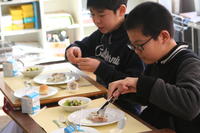 2020年1月24日 16時32分1月24日(金)に6年生がマナー給食を体験しました。食器やスプーン、ナイフとフォークが準備され、いつもの給食と違う雰囲気の中、子どもたちは緊張しながらも、ナイフとフォークを上手に使って楽しく会食することができました。