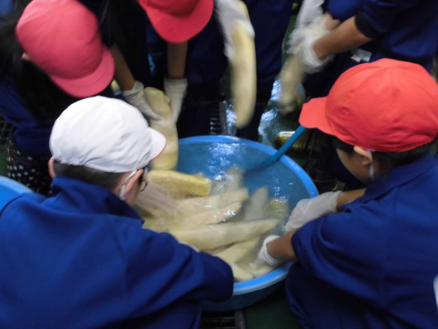 今日は、3.4年生で先日塩漬けしたたくあんの本漬け作業が行われました。支援員のお二人から作業の手順をていねいに教えていただきました。子ども達は冷たい水にも負けないで一生懸命にたくあんの本漬け作業に取り組んでいました。20日から1ヶ月ほどでおいしいたくあんができあがります。