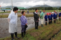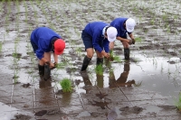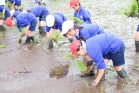 く田植えができました。支援員の山口さんをはじめ、農協の方々やおばあちゃんにお手伝いしていただきながらあっという間に終えるこ