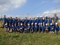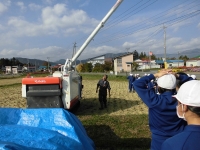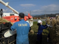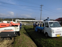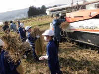 コンバインを利用しての脱穀なのであっという間に終了です。子ども達は