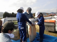 2015年10月26日 14時15分 10月23日(金)の午後、5,6年生は学校田の脱穀作業を行いました。