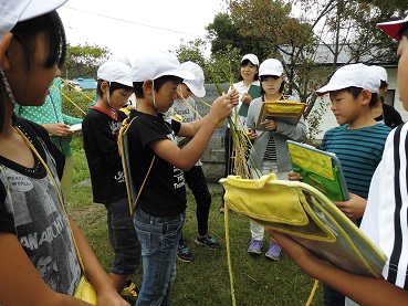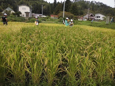 6月6日(金)5年生、6年生が田植えをしました。農業科支援員の荒川 崇さんと荒川みほ子さんに指導していただきながら、自分たちで撒いた種から育った苗を植えていきました。荒川さんからは、植える時のおよその分量や先を水面から出すことなどについて話がありました。そして、田に足を入れると歓声が上がり、足をとられながらも、しっかと苗を植えていきました。田植え後には、「機械で田植えをしたことはあったけど、手で植えると違ったおもしろさがあった。」「去年よりまっすぐに植えることができた。」などの感想を荒川さんに伝えました。お忙しい中ご指導いただき、お茶やおやつまで用意していただきました荒川 崇さん、みほ子さん、ありがとうございました。