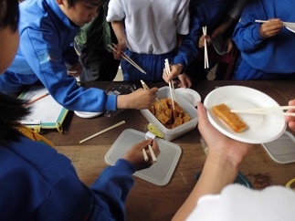 観察が終わってからサプライズがあり,しみもちとアスパラの煮物をごちそうになりました。