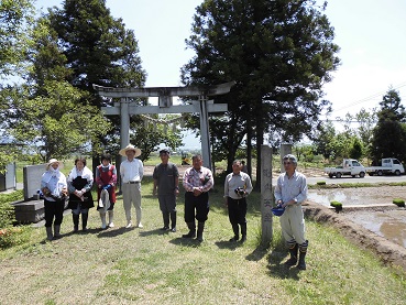 今年から,慶徳稲荷神社のお田植え神事が行われる田んぼを使わせていただくことになりました。(お田植え祭りで苗を植える箇所は残してあります)。今年は田植え指導ために,8人の方に指導していただきました。