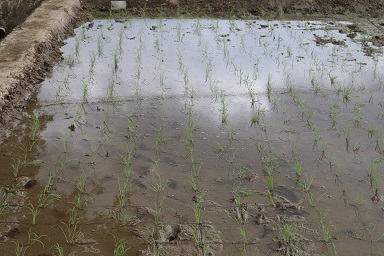 5月21日(木),田んぼに水をはると,苗の列がきれいにそろっていることがよく分かりました。