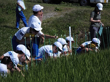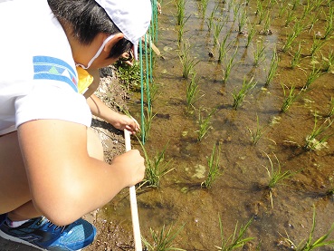 6月8日(月)1校時,5月20日田植えをしたイネの観察を行いました。4月23日に種もみまきをしてから47日目です。