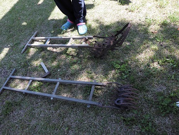 今年から田んぼの草取りもする計画をたて,草取りの道具の「ころばし」も準備しましたが,日程の調整がつかず,またその間苗が大きくなりすぎたため,道具の使い方だけ教えていただきました。