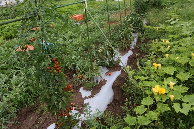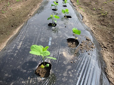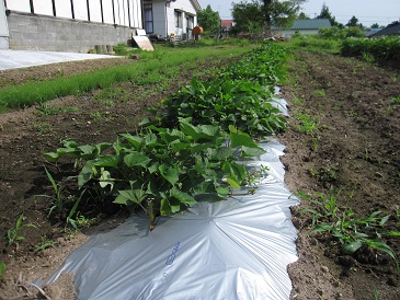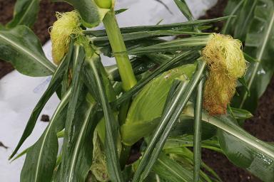 分げつの様子を調べるために株のところを詳しく観察しています。