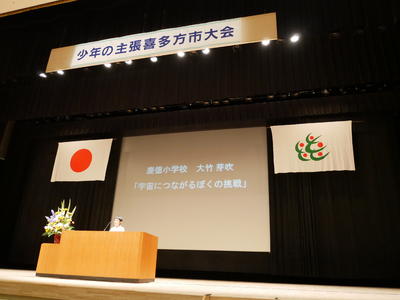 2019年7月21日 14時15分20日(土)、喜多方プラザにおいて、令和元年度少年の主張喜多方市大会が開催され、本校6年大竹芽吹さんが見事「最優秀賞」に輝きました。「宇宙につながるぼくの挑戦」というテーマで、宇宙開発に関わる研究者になるという夢の実現に向けた大竹君の体験や取組について堂々と主張しました。児童アンケート等で、「将来の夢や目標をもっている」という項目が他の項目に比べ低い数値になっている傾向がある中、大竹さんのようにしっかりした夢をもち、それに向かってこつこつと頑張り続ける姿、とても素晴らしいです。