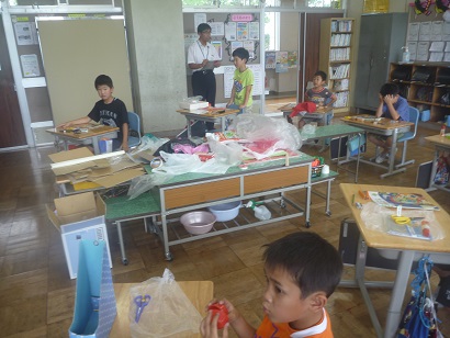 3年生は図画工作科「カラフルフレンド」で、「カラフルなぼうし」の形づくりに挑