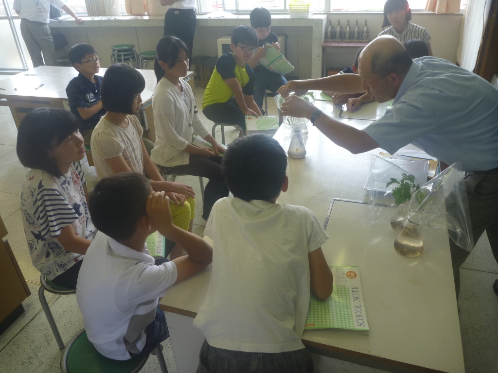 6年生(分科)は理科「植物のからだの働き」で、根から吸い上げられた水は