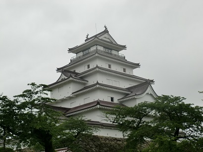 奥先生から説明を聞いて鶴ケ城(天守閣)に上りました。高い所から会津平野を