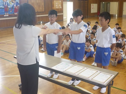 校長先生からよい歯の表彰(ダイヤモンド賞やキラキラ賞等)があり、6年生の代