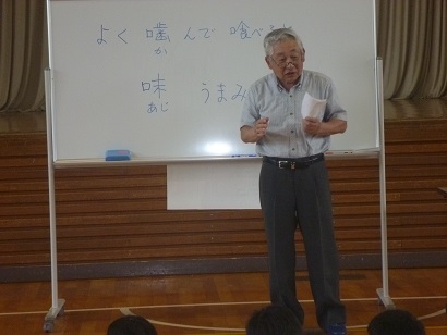 表が賞状を授与されました。その後、志田先生より、食物をよく噛んで食べること