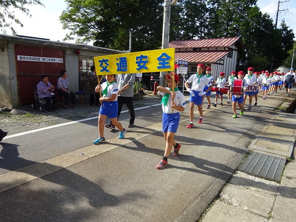 2018年9月27日 15時38分 9月26日(水) 駒形地区の交通安全を願うとともに、自分たちも交通ルールを守ることを誓って、全校生で交通安全鼓笛パレードを行いました。