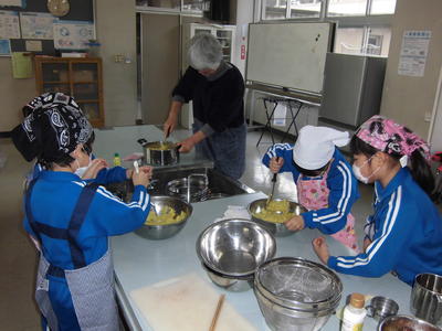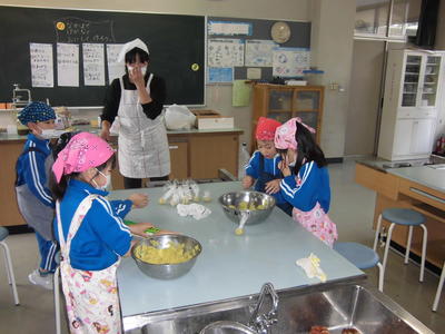 2018年11月20日 12時00分フレッシュママさんのサポートを受け、2年生がサツマイモ料理に挑戦しました!!