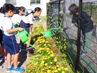 「あいさつ」「はっぴょう」「もくひょう」の3つの力を確実に身に付けるため、児童、保護者、地域、学校が心を一つにして取り組んでいます。