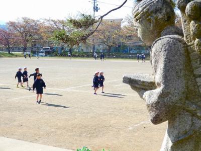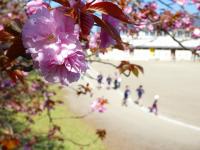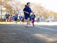 登校し、学習用具を整理し、着替えを済ませた児童は、校庭に出て体力づくりのマラソンをします。