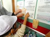 「あいさつ」「はっぴょう」「もくひょう」の3つの力を確実に身に付けるため、児童、保護者、地域、学校が心を一つにして取り組んでいます。