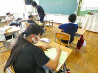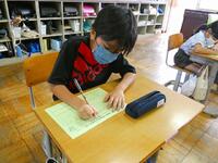 4~6年生は、学校でカードの記入をします。(写真は5年生)