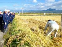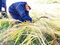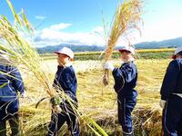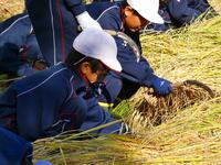 慣れない鎌に戸惑う子もいましたが、稲束の持ち方に気をつけ、けがもなく無事終了しました。