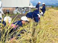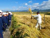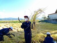 2023年10月18日 10時30分10月18日(水)、農業科の学習の一環として、実習用圃場で稲刈りを行いました。