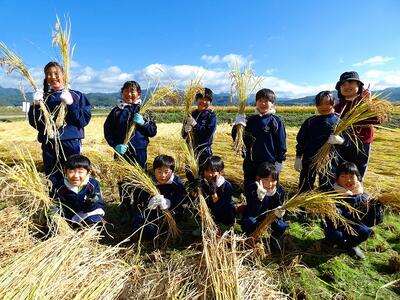 今日収穫したお米は、熊っ子まつりのときに全校児童に配る計画です。