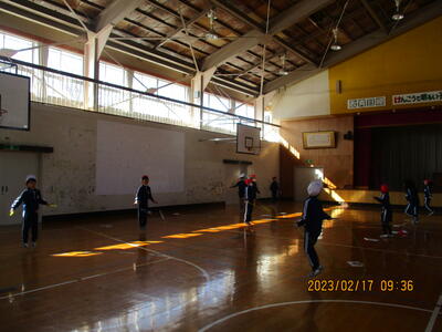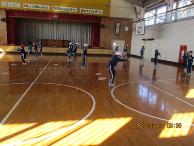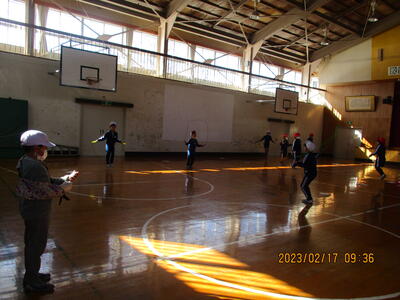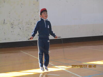 2023年2月17日 17時05分体育の時間に、縄飛びをしています。色々な技に挑戦して、縄飛びカードに色を塗っています。「〇回跳べた!」「〇〇跳びができた!」などと、喜びの声が多く聞かれます。
