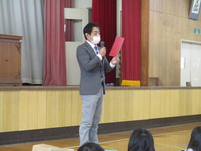 2023年12月22日 13時14分2学期がんばったことについて、校長先生が、具体的な内容をもとに1年生からまなび学級のこどもたちをほめてくださいました。