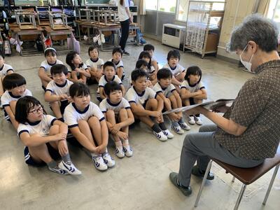2024年9月5日 09時59分読み聞かせボランティアの方々に、まなび学級は「さんねん峠」、2年生は「だいふくもち」、4年生は「くらげの骨なし」、6年生は「黄金の駒」の読み聞かせをしていただきました。ボランティアの皆様、今週もありがとうございました。