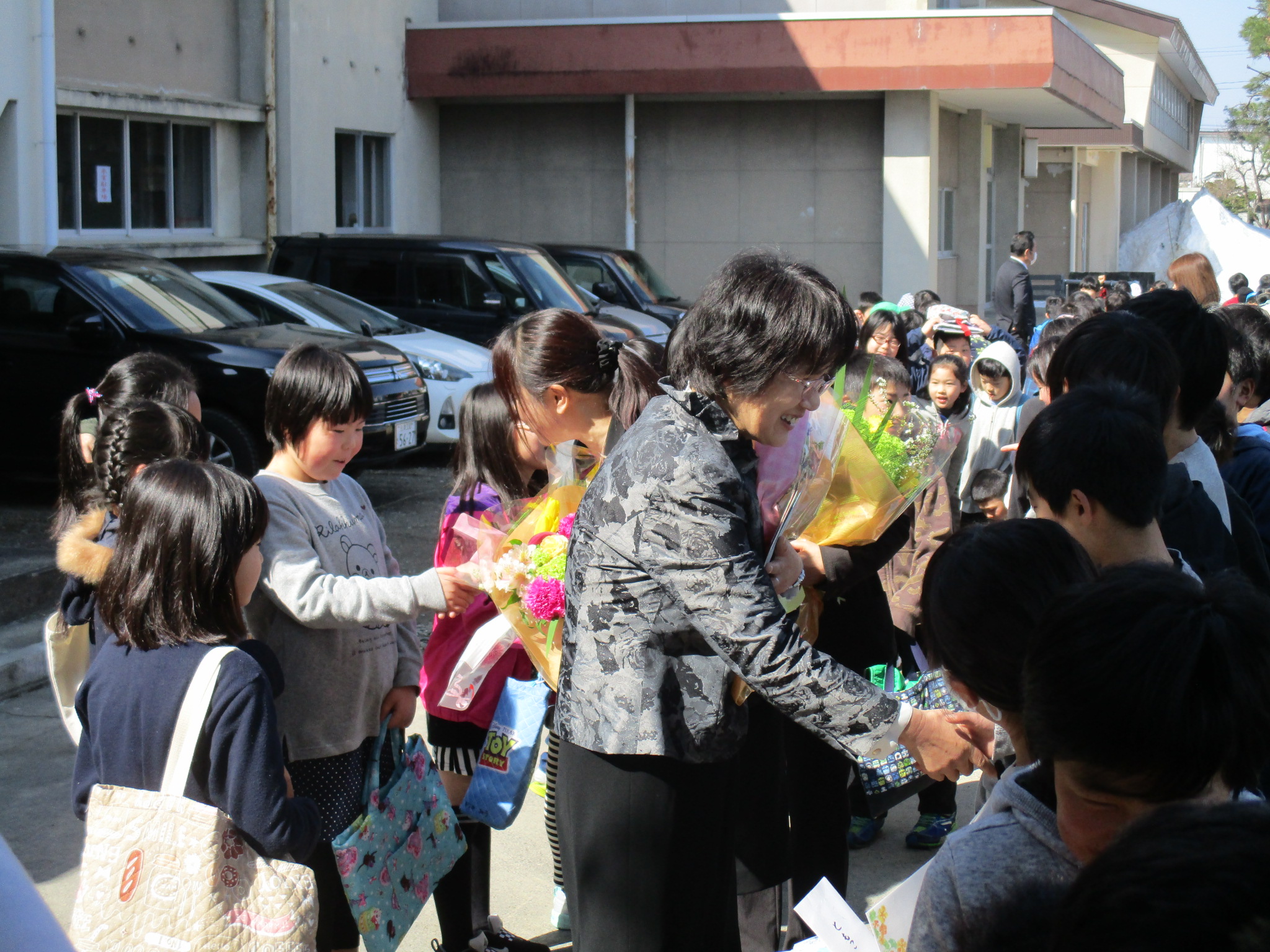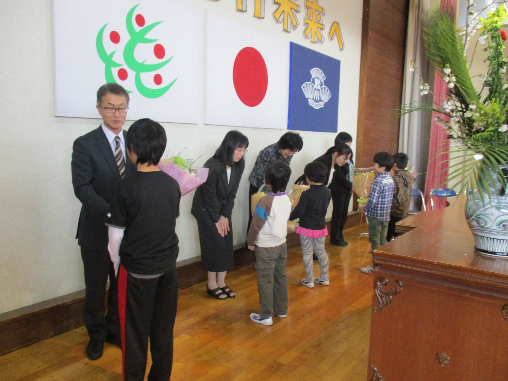2018年3月29日 10時16分離任式が行われ、5名の先生方が転退職されました。5年生の山口心さんがお別れの言葉を述べました。またPTA会長さんのサプライズで、ご退職される3名の先生方に卒業証書をお渡ししました。長い間、本当にありがとうございました。健康第一に益々ご活躍されますことをみんなで祈念しております。
