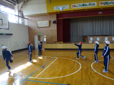 2021年3月1日 17時26分3月1日(月) 5校時の3年生の授業風景です。体育の授業でした。始めに、体力プログラムを行いました。次に、なわとびをしました。前跳びでは、最後まで跳べた児童が3名いて、感心しました。二重跳びは、ほとんどの子が数回で終わってしまいましたが、2名は50回近く跳んでいました。これも大変素晴らしかったです。その後、バレーボールの要素を取り入れたニュースポーツの練習をしました。本来、バレーボールは手でキャッチすることが反則ですが、それを許可したものが、このニュースポーツです。まずは、ボールをキャッチすることが一番大切になるので、その練習をしました。みんな上手に投げたり、取ったりしていたようです。最終的にどんなゲームになるのか楽しみです。