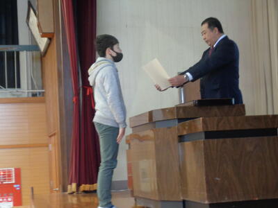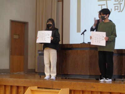2024年2月27日 20時18分今日の全校朝会は、表彰と式歌練習でした。表彰は、「書き初め展」「環境ポスターコンクール」の2つの披露がありました。表彰は以下の通りです。