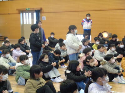 この後、式歌練習をしました。ブレスをしっかりとることで、しっかり声が出せることを教えられ、ブレスの印のところを意識しながら大きな声で歌うことができました。卒業証書授与式、修了式に向けて、しっかりとした声で歌いたいですね。