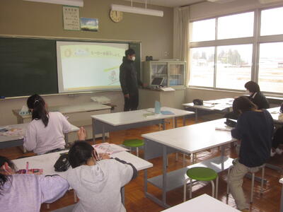 2024年3月14日 12時52分本日はALT(外国語指導助手)の最終日でした。本校は、アーサー先生に一年間お世話になりました。アーサー先生は、ゲームを多く取り入れて、楽しく英語が学べるようにしてくださいました。また、たくさんの単語やフレーズも歌を通して、多く覚えられるようにしてくださいました。フレーズを使って会話できるように、ペアで話し合わせたり、アーサー先生が話の相手をしてくださったり・・・おかげで英語が好きな子がたくさん増えました。外国の人とも積極的にコミュニケーションをとって、色々な人たちとお話できたらいいですね。アーサー先生、一年間ありがとうございました。