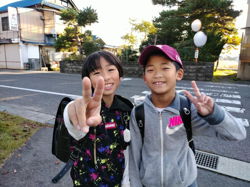 関柴小news(集団登校 あいさつ 10000点ペア)