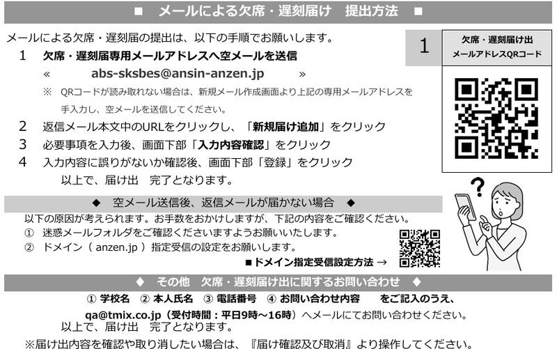 学校への欠席・遅刻連絡について(再掲)
