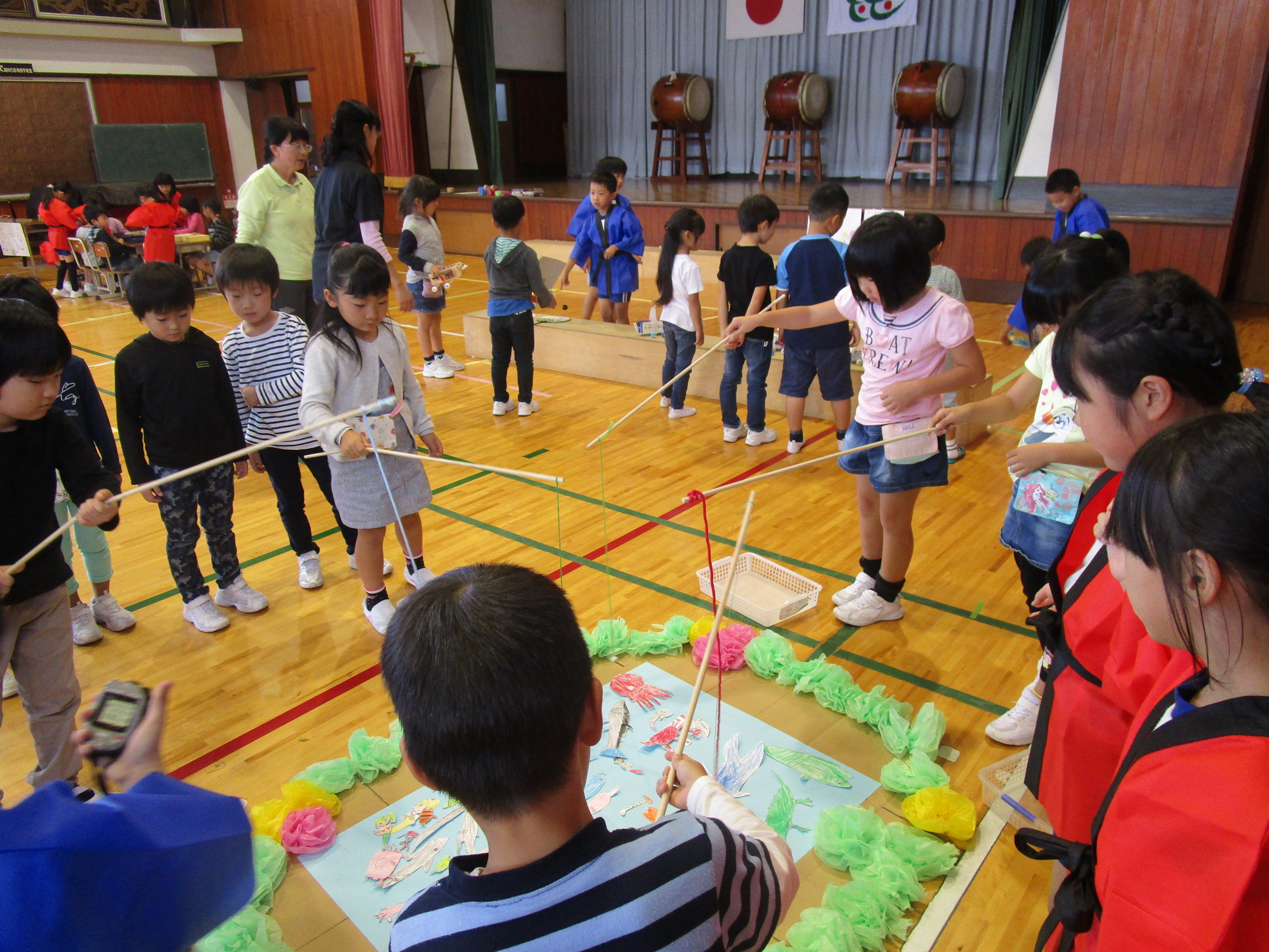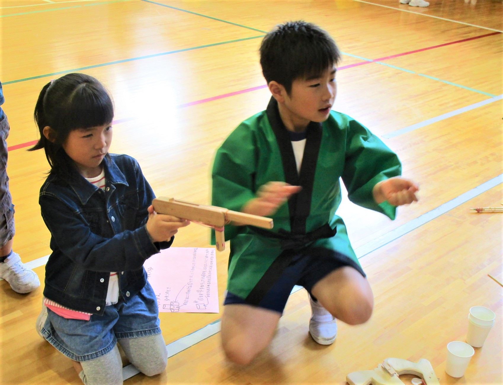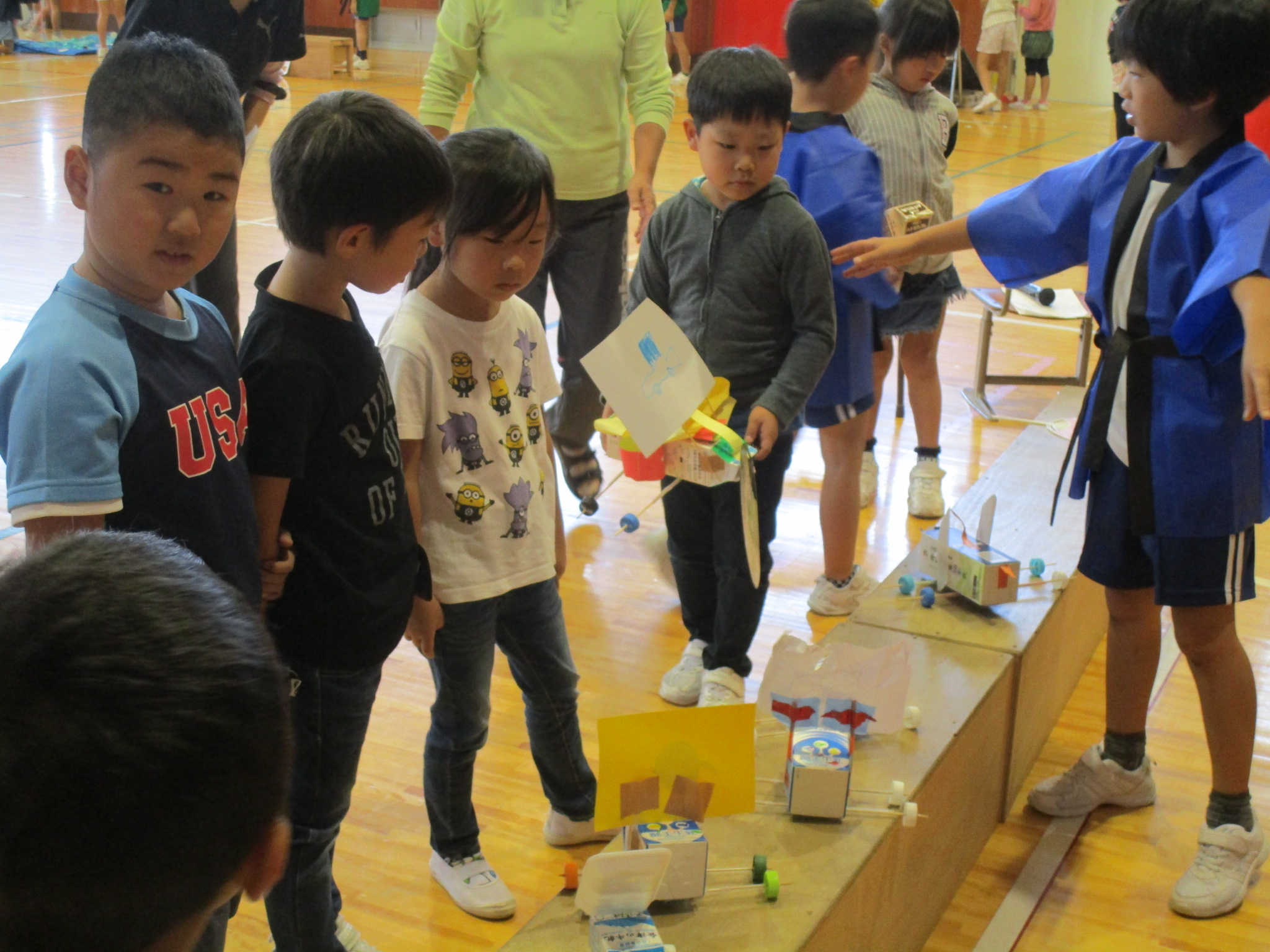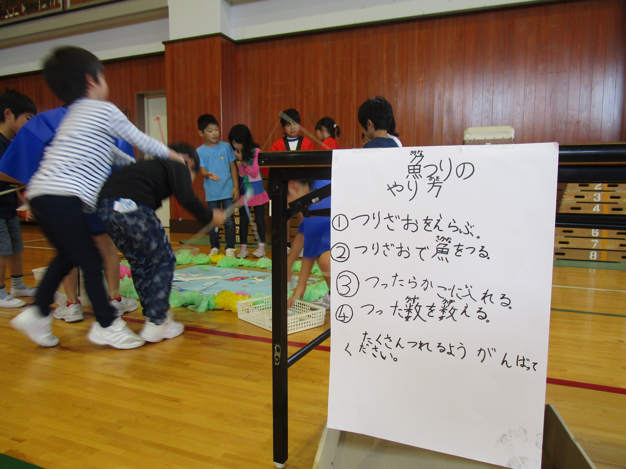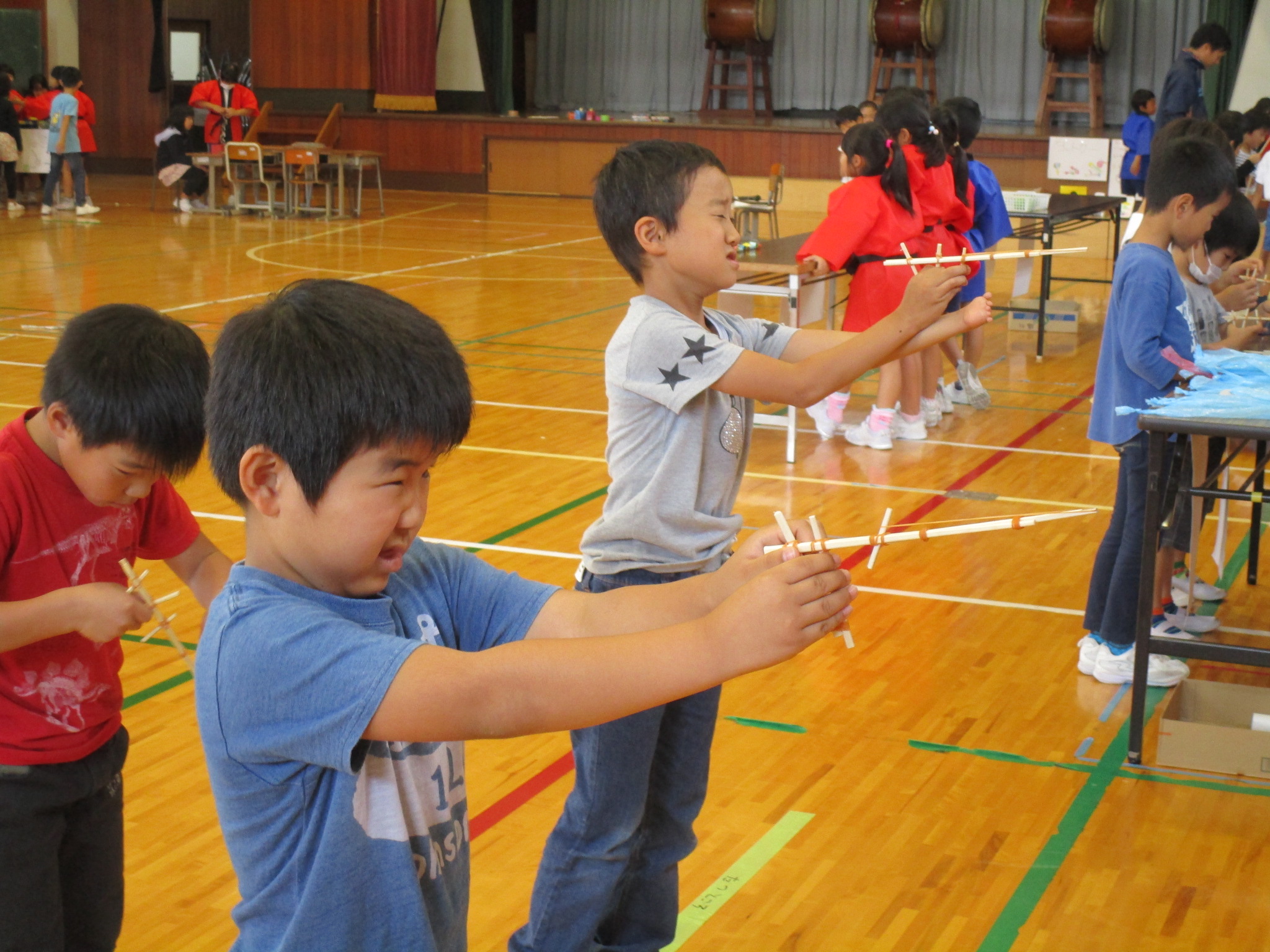 的当てやボーリング、魚釣りやロケットとばしなどたくさんの楽しいおもちゃを手作りしました。そのおもちゃを使って1年生に遊ばせてあげる場面では、優しくていねいに、2年生とは思えない対応をとっていました。とても感心させられるうれしい場面でした。
