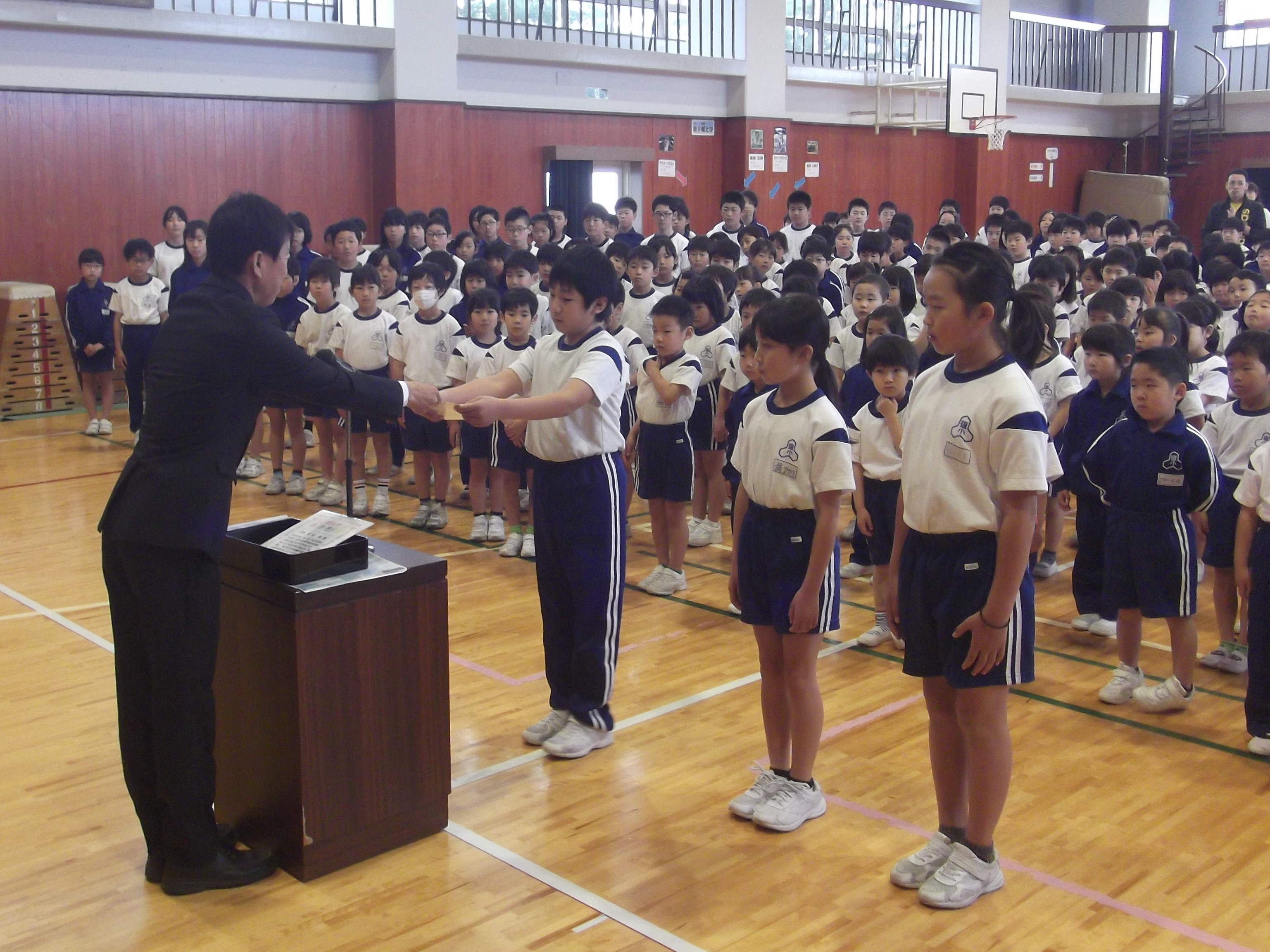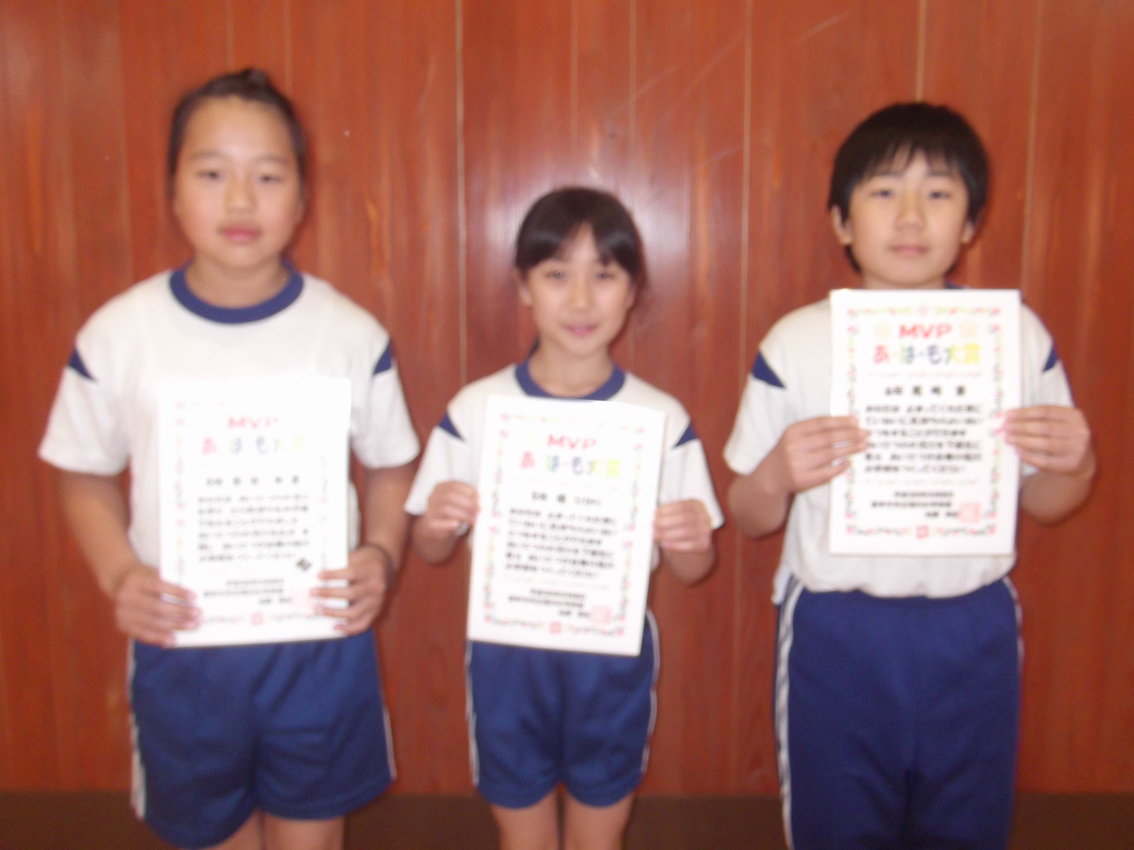 2018年5月8日 12時58分全校朝の会で、あいさつの「あ・は・も大賞」の表彰がありました。