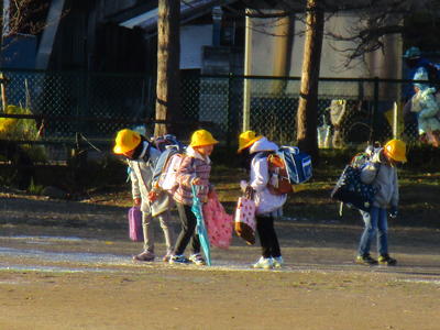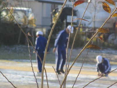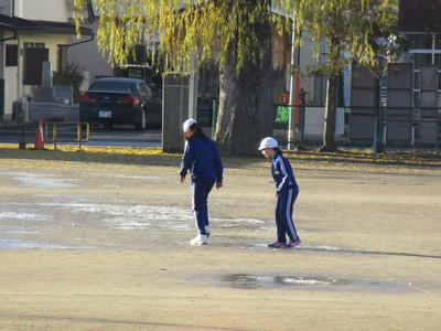 校庭の雪はすでに消えてありませんが、とけた雪が氷となりました。登校してきた子ども達は、さっそく氷割りをし、その音や感触を楽しんでいました。