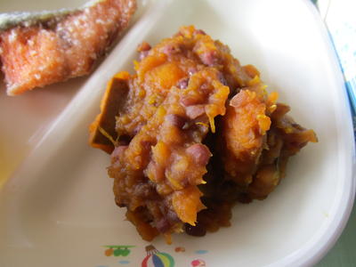 2018年12月20日 12時29分今日の給食は、一足早い冬至カボチャがでました。