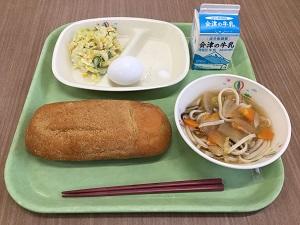 「きなこ揚げパン」「ゆでたまご」「マイルドカレーサラダ」「うどん汁」の献立でした。