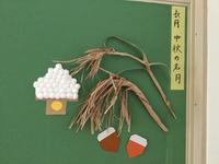 十五夜にちなんだ満月に月見団子、すすきやどんぐり、コスモスも季節を感じさせますね。